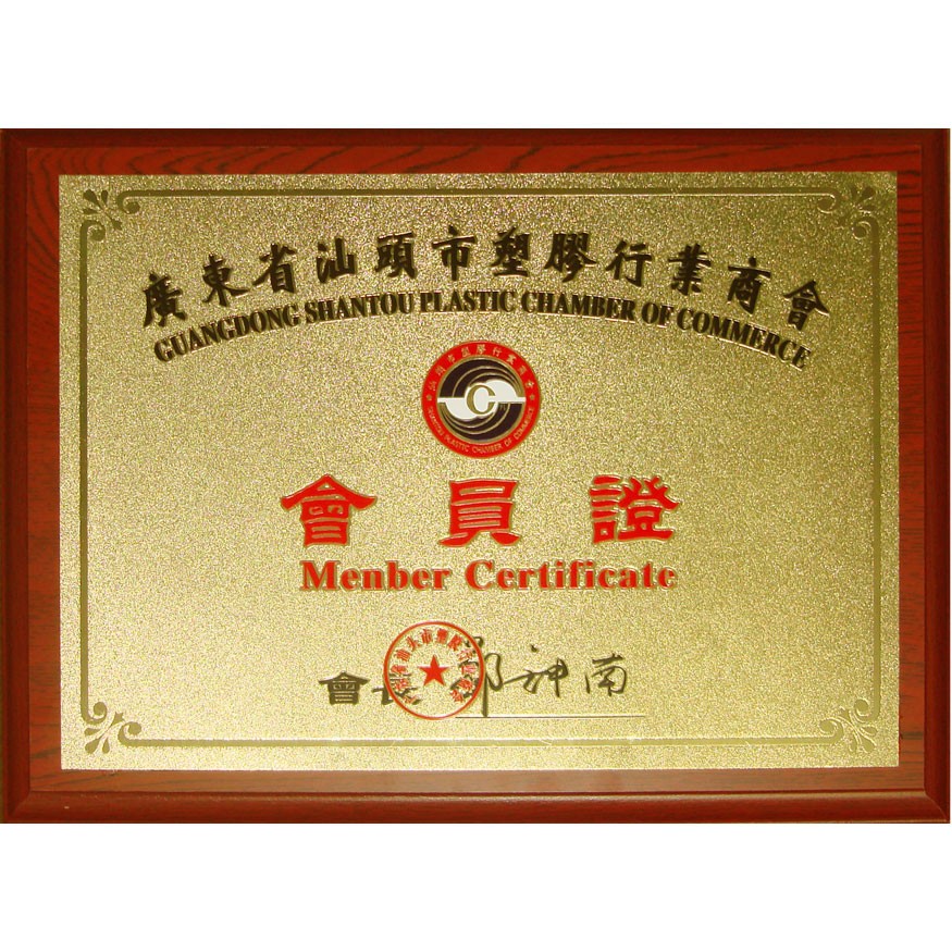汕頭市塑膠行業商會-會員證