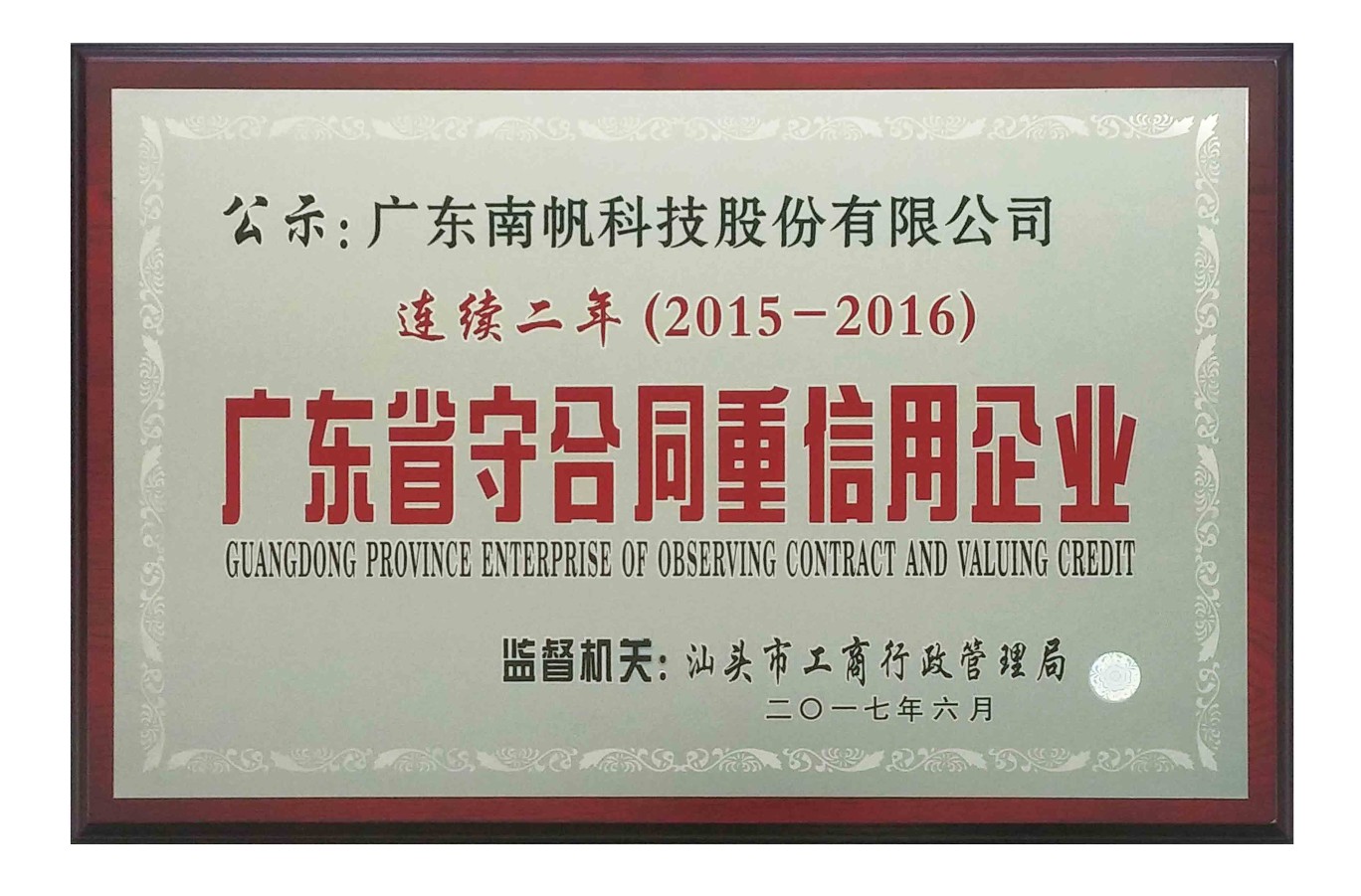 廣東省守合同重信用企業