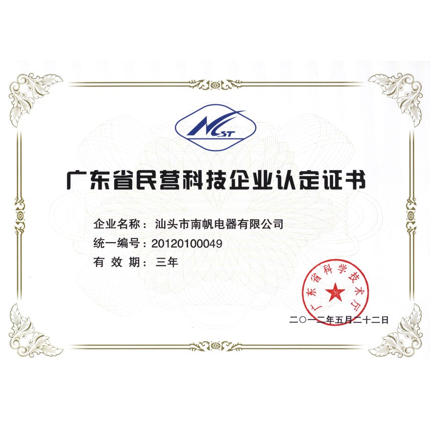 廣東省民營科技企業認定證書