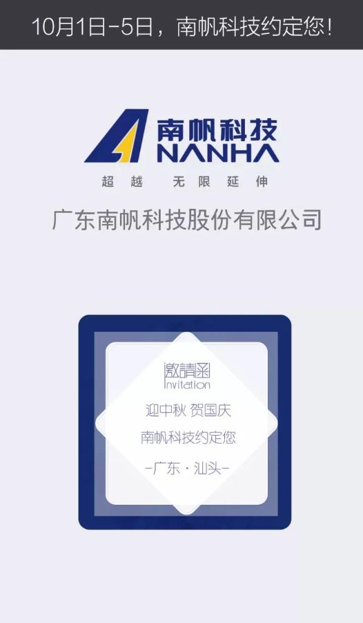 廣東南帆科技股份有限公司邀請(qǐng)函